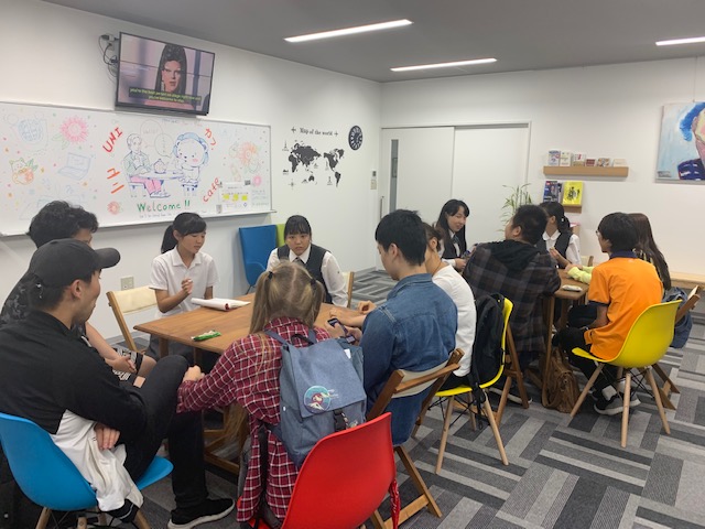 ユニタス2号館にありますインターナショナルラウンジ、UNI CAFEを、先日、山梨県内の高校生の方々が学校の探求活動に利用してくださいました。